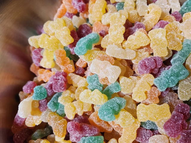 Glucose Syrup, Sugar, Corn Starch, Water, Acids (Citric Acid, Malic Acid), Acidity Regulator (E331), Flavourings, Colours (E133, E129, E102).